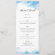 Cartões de Menus ou programas de casamento para o seu casamento para combinar com os seus convites de casamento de cor azul-d-água. Primeiro ao terceiro curso e bebidas são incluídas para você personalizar. A página traseira é vazio para texto adicional opcional.