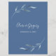 Cartão de Menu de Casamento de Cor Azul e Branca, desenhado com folhas azuis de fluxo suave sobre fundo branco. O texto inclui: Menu, Seu Apetista, Entre e Seleção de Sobremesa. O texto do verso inclui: Os primeiros nomes e a data de casamento da noiva e do noivo em um plano de fundo azul correspondente. Para personalizar, basta inserir os Detalhes do menu de casamento em modelo fácil, substituindo o texto de amostra. Certifique-se de ver a Coleção de Casamentos Azul e Branco para Cores de Água completa para cartões e acessórios correspondentes.