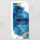 Este design de menu de janto de recepção é apresentado em tons de joias de cor azul de safira e ouro. É a escolha perfeita para uma recepção de casamento contemporânea e elegante. Observe que o ouro não é metálico. Não será utilizada qualquer folha de ouro para produzir este produto.