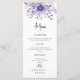 Menu Casamento de Cor de Água Floral Púrpura