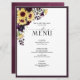 Crie a configuração perfeita de recepção com este design de menu de 6,5 x 8,75" com um buquê de roxo de ameixa rico, girassóis e verde botânico, e é bordado em roxo de ameixa. Personalize seus detalhes acentuados com uma bela caligrafia feita à mão. Perfeito para, mas não limitado a, aquele casamento no quintal e no jardim. Parte de uma suíte de casamento que esperamos que você ame tanto quanto nós: https://www.zazzle.com/collections/elegant_sunflower_plum_purple_watercolor_script-119479724198769053 Copyright Anastasia Surridge for Elegant Invites, todos os direitos reservados.