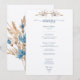 Flores de milho azul macio e gramíneas secas bronzeadas complementam este cardápio de casamento. Este design pode ser adicionado a um fundo branco puro, se preferir. Criado pela imprensa simplesmente de farmácia.