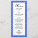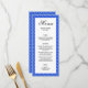Um cardápio de casamento com belas imagens de crocuses azuis, tulipas e campainhas azuis. O fundo e as imagens podem ser personalizados. Arte original de W.B.