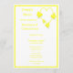 Design de carneiro de carneiro de carborboletas de casamento. Personalize este cardápio amarelo de casamento com seus detalhes de casamento. Se precisar de ajuda para personalizar, entre em contato conosco através do link desta página. Cardápio de casamento personalizado de borboleta colorida amarela e design de coração