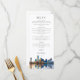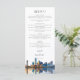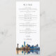 Esses elegantes menus de casamento com aquarela da silhueta de Dallas podem ser personalizados com suas informações em tipografia moderna. Projetado por Thisisnotme