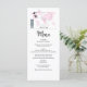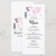 Este design apresenta um tema de passagem de embarque. Ele mostra um mapa rosa do mundo junto com dois aviões fazer forma cardíaca à medida que eles viagem pelo mundo. Este destino tematizado design de casamento é definido como um cartão de embarque com a data do casamento personalizado nos quadrados. Um design de destino romântico com um toque elegante. Ideal para um casamento de destino, não importa onde no mundo. O perfeito design de cardápio de viagem da temporada inteira. Os convites de casamento e outros artigos de papelaria também estão disponíveis.
