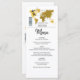 Este design apresenta um tema de passagem de embarque. Ele mostra um mapa dourado do mundo junto com dois aviões fazer forma cardíaca à medida que viagem pelo mundo. Este destino tematizado design de casamento é definido como um cartão de embarque com a data do casamento personalizado nos quadrados. Um design de destino romântico com um toque elegante. Ideal para um casamento de destino, não importa onde no mundo. O perfeito design de cardápio de viagem da temporada inteira. Os convites de casamento e outros artigos de papelaria também estão disponíveis.