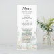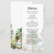 Este elegante e belo cardápio de casamentos de aquarelas mostra uma praia e palmeiras. O texto combina o script manuscrito e as fontes sans serif para uma aparência na moda e moderna. Isto é perfeito para uma praia de verão ou um casamento de destino tropical.