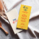 Um menu colorido de janto de casamento amarelo, azul e vermelho. Que apresenta o design de modelo chic do fundo amarelo boho vintage e a tipografia vermelha em negrito .Perfeito e correspondente a toda a suíte.