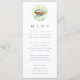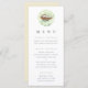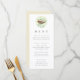 Moderno, brincalhão e tropical, este menu de casamento mostra uma pintura aquosa de um barco de madeira no mar emparelhado com tipografia quic.