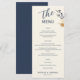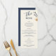 Menu Casamento de Escrita Azul de Folhagem Dourada Eleg