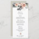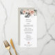 O moderno menu de recepção do janto de casamento tropical apresenta folhas de monstera tropical e flores em tons de rosa e pêssego. O verde-sábio pode ser alterado para qualquer cor. Todo o texto, fontes e cores podem ser alterados. A coordenar os itens disponíveis para completar a tua suite de casamento.