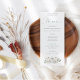 Casamento de Florais de Pumpkins Branco Moderno. Três abóboras com florais brancos e folhagem de feltro estão no fundo com um talo de coordenação no verso, com um roteiro elegante para Menu e fácil personalizar o resto do texto de acordo com as suas necessidades.