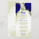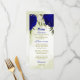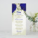 Belo cartão de cardápio de casamento com flores azuis e brancas reais e folhas verdes Os detalhes da reluz dourada são simulados. PARA MAIS PRODUTOS CORRESPONDENTES, clique na coleção acima ou entre em contato comigo