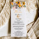 Abraçar o calor do sol do país com o nosso menu janto de casamento cor de laranja boho-rústico, adornada com lindos girassóis, folhas verdes e ramos vermelhos castanhos. Perfeito para o casal de espírito livre. com uma tipografia de script escovado em um simples fundo branco editável.