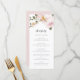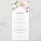 Adicione um sotaque floral elegante à sua colchete de eventos com esta papelaria de cartão de menu floral personalizável. Ele apresenta um buquê floral de aquarela de flores rosas e verdes. Personalize este cartão de menu floral de cor d'água adicionando seus próprios detalhes. Esta placa de menu rosa pincelada é perfeita para primavera e casamentos no inverno, chás de panela, chás de fraldas e muito mais.