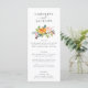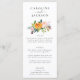 Este cardápio de outono apresenta um buquê de queda floral de cor d'água e uma bonito tipografia. Personalize o menu casamento outono com os nomes do casal no topo e adicione os detalhes do janto de recepção abaixo do buquê floral. A parte traseira do menu é decorada com um padrão floral rústico que inclui rosas, mães e botões de proteção em bonito cores de queda, como burgundy, ameixa, rosa-pincel e amarelo-ouro.