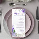 Menu Casamento de Flores Geométricas Douradas Roxas Ele