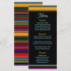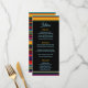 Aprecie seus convidados com este vibrante Menu de Casamento das Flores Modernas Mexicanas, onde rico talento cultural encontra o estilo contemporâneo. Um quadro floral ousado, com florações exuberantes em vermelhos ferozes, amarelos ensolarados, pinks quentes e verdes frescos circunda as seleções de menus, inspirando-se na tradicional arte popular mexicana. Atrás dos florais, um fundo listrado de matizes saturadas lembra cobertores de serape festivos, acrescentando contraste dinâmico e energia. A tipografia moderna e limpa apresenta cada curso com clareza e elegância, enquanto a vívida fronteira traz calor e celebração à mesa. Perfeito para casais que querem seu menu refletir tanto o patrimônio cultural quanto a sofisticação alegre.