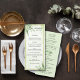 Menu Casamento de Folhagem Dourada Verde com Frame Euca