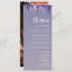 Encaixe seus convidados com um menu de casamento de fotos flóricas com gradiente Whimsical Purple Floral Eleve sua experiência de jantar de casamento com este elegante e na moda. O design floral roxo balbusto e balbusto num fundo de gradiente roxo suave cria uma atmosfera sonhadora e romântica. A frente do menu apresenta um título em negrito "O Menu", seguido de uma lista detalhada de aperitivos, cursos principais, sobremesas e refrigerantes. A parte de trás do cardápio mostra uma bela foto do casal, juntamente com seus nomes e data de casamento. Este cardápio sofisticado e funcional é a maneira perfeita de impressionar seus convidados e melhorar a estética geral do seu casamento.