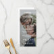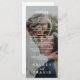 Menu de casamento de fotos minimalista com um simples design com a palavra "menu" em um elegante roteiro manuscrito com toques de branco e seus nomes em cima de sua foto favorita. Estes menus modernos e quic do casamento coordenam-se bem com qualquer estilo de casamento.