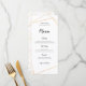 Estes menus elegantes com linhas geométricas douradas no topo e no fundo e texto preto clássico parecerão muito na moda nas suas mesas de casamento. O texto é facilmente personalizado e as cores do plano de fundo e do texto podem ser alteradas se você desejar, por meio da opção Clique para personalizar mais. Um padrão geométrico também está no sentido inverso e pode ser removido, se necessário, através do link de personalização adicional.