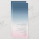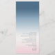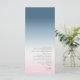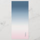 O pano de fundo das peças neste conjunto minimalista de casamento é um gradiente de cores que chama a atenção do azul prussiano, passando pelo branco e rosa macio. O cartão de menu de casamento mostrado aqui apresenta um layout moderno e elegante e fonte de sans serif contemporânea para acrescentar ao seu apelo. Adicione facilmente as seleções de menu, as iniciais e a data do casamento usando a modelo fornecida. Procure ID741 para ver o conjunto completo de produtos correspondentes no Céu Prussiano ou escolha uma das outras combinações de gradiente disponíveis para se adequar à paleta de cores do casamento.