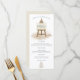 Estilo russo para as suas mesas de café da manhã de casamento. Ilustrações de Boho de um manjericão com o título Menu e um bolo de casamento no fundo, com tipografia na moda simplista. O texto é facilmente personalizado para seus próprios detalhes e você pode alterar o estilo e a cor da fonte e as cores de fundo na frente e na parte traseira, se desejar, através da opção Clique para Personalizar mais.