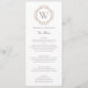 Monograma Insignia Elegante Menu de Casamento. Texto de cinza elegante em branco com uma insígnia inicial de monograma cor de cobre, cor de pincel, no solteiro. Personalize com o nome, inicial e menu do noivo e do noivo. Visite nossa loja, Austen & Grace, para ver a suíte de casamento de cheios, produtos correspondentes e muito mais, e entre em contato conosco se precisar de assistência: contact@austenandgrace.com