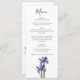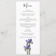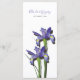 Este elegante design floral apresenta íris roxos. Os nomes da noiva e do noivo são da cor correspondente ao roxo da flor da íris. No verso é utilizada uma imagem maior das elegantes flores da íris. Este é o perfeito design de casamento floral ideal para qualquer tema de casamento. Design do cardápio de flores da íris elegante com elementos modernos. Os convites de casamento e outros artigos de papelaria também estão disponíveis.
