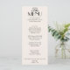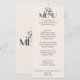 Um cardápio de jantar de casamento de luxo sofisticado e retrô. Que apresenta um design de modelo chique de fundo antigo em preto e creme branco e tipografia preta e cardápio sofisticado. Perfeito e combinando com o conjunto todo.