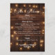 Este elegante design de casamento de madeira marrom com lindas luzes de cordas pode ser personalizado com o seu menu Casamento.