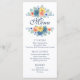 Este design de cardápio apresenta flores elegantes e coloridas de aquarela em palha macia, azul, coral e amarelo com folhas verdes sobre fundo branco com o seu menu personalizado abaixo. O texto pode ser personalizado editando as caixas de texto. A cor no verso do menu pode ser alterada no editor. Projetado para você pelo Evco Studio © em www.zazzle.com/store/evcostudio #casamento #menu #menucard #primavera #verão #watercolor #wedinginspiração #botânico #foliage #floral #flores #elegante #na moda #moderno #design #popular #topsellers #topsellers #topseller #trending #wintercasamento #summerncasamento #autumncasamento #florertemático #noivado #station#personalizado #destino personalizado #destino formal #celebrações clássicas #branco #teal #azul #coral #pêssego #amarelo #white #função #partimento #particionismo