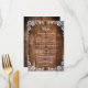 Este cardápio de casamento de madeiras rústicas e locais é uma forma encantadora e romântica de convidar convidados para o seu dia especial. Ele apresenta um fundo de madeira com sutil textura de grãos, delicados sotaques de rendas, fazer perfeito para um casamento no país ou para casais querendo uma sensação quente e íntima. Use as ferramentas de design para atualizar o texto e a fonte.
