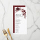 Apresentando o Elegante Maroon Burgundy Wedding Menu — um belo aditamento ao seu dia especial. Projetado para complementar a atmosfera luxuosa e romântica dos casamentos, este menu apresenta uma paleta profunda de marrom e burgundy que expele sofisticação e calor. Impresso em estoque de cartolina texturizado de alta qualidade, o menu mostra sotaques pretos que adicionam um toque de opulência. Cada curso é cuidadosamente definido em uma fonte graciosa, garantindo que seus hóspedes não apenas desfrutem dos prazeres culinários, mas também apreciem a elegância da apresentação. Perfeito para o outono e casamentos no inverno, este menu melhora o ambiente com seus tons ricos, fazer-o uma parte inesquecível de sua celebração.
