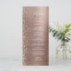 Este elegante cardápio moderno de casamento apresenta uma falsa borda brilhante de diamante em um fundo de metal esfregado em ouro rosa. O texto personalizável combina o script branco de escrita manual e as fontes sans serif. O rosa dourado, o metal escovado e o design reluzente, são repetidos no verso.