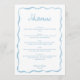 Personalizado on-line facilmente | Ilustrado à Mão | Parte de um Matching Wedding Suite Adicione um toque alegre à sua celebração de casamento com este menu de casamento caprichoso 5x7, projetado para encurtar seus convidados e amarrar sua decoração de mesa lindamente no seu tema geral. Apresentando um encantador quadro ondulado, ilustrado manualmente, em azul claro e branco suave, este menu captura o espírito lúdico dos casamentos de primavera e verão, ou adiciona um toque de magia alegre a uma celebração de inverno. A design de moldura ondulada, escrita à mão, traz uma sensação artística trabalhada, enquanto a tipografia manuscrita caprichosa acrescenta calor e personalidade a cada lugar. Quer você esteja planejando um casamento romântico no jardim, uma reunião confortável no inverno, ou uma celebração animada pelo mar, este menu ajuda a definir o tom perfeito. O que torna esta design extra especial: - Estipulosamente Impressionante: Encantem seus hóspedes com uma design única que reflete a alegria e a magia de sua história de amor. - Online totalmente personalizável: edite facilmente o texto, as fontes e o layout no Zazzle, sem precisar de ferramentas de design. Torne-o verdadeiramente seu em minutos! - Três Estilos de Quadro Disponíveis: escolha entre três variações do mesmo belo design para corresponder ao resto do seu pacote de artigos de papelaria. - Parte de uma suíte de casamento coordenado: combina perfeitamente com convites, cartões RSVP, salvas as datas, convites de janto de ensaio e muito mais! Pronto para personalizar o seu menu? Comece a personalizar instantaneamente!
