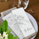 Um simples e moderno menu monotone de desenho de casamento. Perfeito para um simples casamento de cor de laranja moderna. Personalize este design de convite de casamento cor de laranja com seus próprios detalhes de menu de quatro cursos. Outros itens correspondentes disponíveis. Arte de mão com flor de laranja, por Sarah Trett, para www.mylittleedenweddings.com