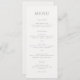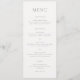 Menu de casamento elegante com um design clássico com seu monograma em uma fonte de script junto com seu menu em uma fonte de serifa tradicional.