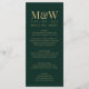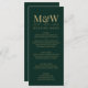 Menu de Casamento do Monograma Dourado Verde. Belo design verde e dourado com tipografia moderna e iniciais de casal em antigo texto dourado em verde profundo. Personalize com as iniciais da noiva e do noivo, a data do casamento, o menu do casamento e ajuste o texto da amostra do convite e ou as cores que desejar. Visite nossa loja, Austen & Grace, para ver a suíte de casamento de cheios, produtos correspondentes e muito mais, e entre em contato conosco se precisar de assistência contact@austenandgrace.com