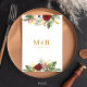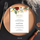 Menu de Casamento de Monograma Floral Dourado Vermelho e Bold Único.