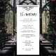 Menu Casamento de Monograma Gótico Branco e Preto Elega