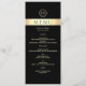 Adicione um toque sofisticado à sua mesa de casamento com este menu luxo preto e ouro com um monograma moderno no topo e uma tipografia elegante por todo o lado. O fundo preto formal, aliado a uma banda de ouro brilhante e falsa, cria um aspecto chic e eterno — perfeito para recepções de casamento de escala superior, glamourosas ou formais. Totalmente personalizável para refletir a data do casamento, as iniciais e as seleções de janto exclusivas.