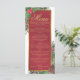 Este belo cardápio é perfeito para um casamento de Natal ou de Natal. Apresenta um design bóico rústico com verde de inverno, incluindo folhas sagradas, bagas e galhos de pinheiros em tons de vermelho e verde, com uma falso estrutura de ouro de folha. O texto é completamente personalizável com espaço para o nome do casal e a data do casamento. Elegante, na moda e chic, este menu é uma maneira excelente de adicionar classe e estilo à sua recepção de casamento enquanto deixa seus convidados saberem o que é para jantar!