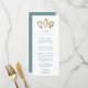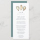 Compartilhe os detalhes do menu de recepção de casamento em estilo elegante com estes cartões de menu de casamento costeiros em branco com a inscrição em marinho e um trio de ilustrações de casca de ostras aqua e marfim. Adicione suas iniciais e data de casamento ao topo e personalize os itens de menu organizados por curso.