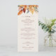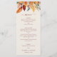 O Elegante Fall Leaves Autumn Wedding Menu apresenta um belo buquê de folhas do outono em ferrugem, amarela, dourada, mostarda, castanha e roxa.