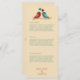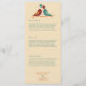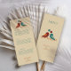 Preencha suas mesas com este menu de casamento elegante de aves de amor. Apresentando uma simples ilustração de dois pássaros encarando um ao outro — um em tons legal e o outro em forma de calor — contra um fundo de creme suave, este menu traz um toque de charme e sofisticação para sua recepção. É a adição perfeita à sua suíte de casamento de pássaros, acrescentando um olhar coordenado em todos os detalhes do seu dia especial.