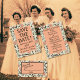 Se você ama a estética do interior de 1940, você vai adorar este estilo de vintage, texto marrom sobre um fundo de pêssego e chintz verde.