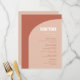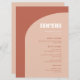 Menu de casamento. Minimalista, porém impressionante: adote este design tipográfico ligeiramente retrorreflector para a sua papelaria de casamento, com um design de arco moderno e terracotta e cores laranja queimadas. Texto, cores e fundo totalmente personalizáveis.
